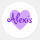 Ce sticker a du texte personnalisable. Vous pouvez créer votre propre design personnalisé. La police est un style d'écriture mignon, mais vous pouvez choisir une police de calligraphie différente. Un joli nom de coeur violet pour Alexis. Un cadeau mignon pour les filles.