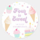 Sticker Rond Crème glacée et gâteau quatre est doux 4e annivers