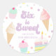 Six est Sweet ! Crème glacée, Saupoudrer et gâteau 6e anniversaire autocollants de fête.