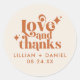 Ce Sticker Rond Classique Moderne Retro Crème et Merci Mariage Orange est une excellente façon d'ajouter un peu plus de personnalisation à votre grand jour. La palette de couleurs orange et crème donne un look rétro très moderne mais vintage. Dites merci avec Amour & Merci.