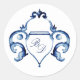 Sticker Rond Crest Bleu et blanc Delft mariage monogramme