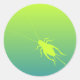 Un cricket jaune-vert contre un dégradé bleu-vert.