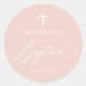 Sticker rond Dusty Pink Cross Girl Baptism, Baptême rose, Baptême fille, Baptême rose moderne Favoriser Sticker
