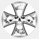 Cette Croix de fer a trois crânes. Les trois crânes sont à l'intérieur de la croix de fer. La Croix de fer a alternativement des bordures de noir et blanc. Ce design est parfait pour les amateurs de moto et de moto.