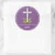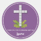 Croix blanche perle sur verdure sur un Sticker arrière - plan violet! Conception parfaite pour la première communion, le baptême, le baptême, le baptême, la fête de la dédicace favorise les autocollants et plus encore. CORRESPONDRE des articles dans notre magasin.
