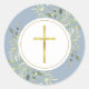 Sticker Rond Croix d'or simple Aquarelle Verdure Dusty Blue