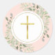 Sticker Rond Croix d'or simple Aquarelle verte rose pâle