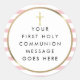 Jolie bande rose Première Sainte Communion autocollant avec une croix d'or avec une élégante bordure de feuille d'or qui encadre votre message d'événement de célébration spécial mis dans la typographie moderne. Conçu par Thisisnotme©
