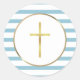 Autocollant simple à rayure bleue avec une croix dorée et une bordure élégante en faux papier doré. Parfait pour toute occasion religieuse chrétienne. Conçu par Thisisnotme©