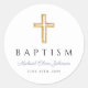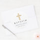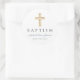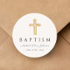 Sticker classique rond croisé religieux Dusty Script Baptême garçon personnalisé.
