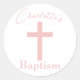 Sticker Rond Croix rose bébé avec nom personnalisé Baptême