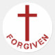 Sticker Rond Croix Rouge pardonnée et design chrétien du texte