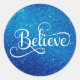 Croyez Calligraphie Script Royal Blue Faux Parties scintillant Classic Round Envelope Sticker. Veuillez noter qu'il s'agit d'un design graphique/photo qui est transféré au produit sous-jacent, et qu'il ne contient aucun cuir, tissus, ruban, métaux, gravure, pierres précieuses, parties scintillant ou gaufrage.