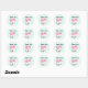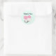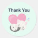 stickers Merci avec une adorable illustration graphique. Un chaton blanc avec une jolie image empreinte de patte sur sa fourrure. Dormir tranquillement. Un grand coeur rose derrière elle et quelques petites étoiles aussi. Arrière - plan vert menthe.