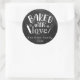 Un autocollant rond de Fêtes Cuites avec un design noir et blanc, whisk et snowflakes.
