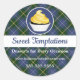Sticker Rond Cupcake de glace jaune sur Tartan Motif Arrière -
