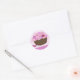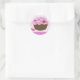 Un cupcake sucré garni de marties roses et violettes. Un arrière - plan mou de rose avec des points mauves et une bordure rayée. Yummy !