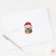 Sticker Rond Custom Cat Face Photo Santa Hat Christmas