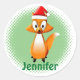 Jolies décorations personnalisées avec renard de bande dessinée en casquette Père Noël. Modifiez le nom pour personnaliser cet autocollant. Idée cadeau pour les enfants.