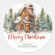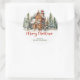 Sticker Rond Cute aquarelle pain d'épices maison forêt d'hiver