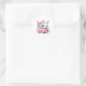 Stickers with an illustration featuring 2 white furry bunnies sharing a big pink heart. The girl bunny is wearing a cute bow on her head and heart-shaped glasses. The boy bunny is wearing an adorable little suit with a tie.