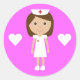 Sticker Rond Cute Cartoon Infirmière & Coeurs Personnalisable R