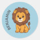 Sticker Rond Cute Cartoon Lion Blue Custom Name