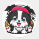 Sticker Rond Cute Chibi Bordure Collie Puppy