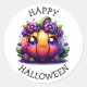 Un adorable kawaii chibi citrouille orange avec des fleurs violettes sur elle Happy Halloween stickers. Ajoutez une touche mignonne aux enveloppes de la carte Halloween ou aux sacs de fête.