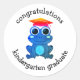 Mignons autocollants de graduation personnalisés de la maternelle de grenouille pour célébrer la réussite de votre petit. Design montre une grenouille bleue turquoise, qui texte personnalisable qui lit FÉLICITATIONS KINDERGARTEN GRADUATE. Offres assorties disponibles.