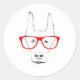 Sticker Rond Cute Doberman Pinscher Dog Face w Spectacle Esquis
