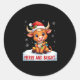 Sticker Rond Cute Highland Baby Cow Christmas Lights Merry & Br