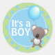 Ce design sucré coordonne avec une invitation baby shower correspondante. Il présente un mignon ours koala tenant un ballon bleu et des pois bleus sur un arrière - plan vert clair. Vous pouvez changer l'arrière - plan vert en couleur de votre choix en cliquant sur le bouton "Customiser" et en choisissant une autre couleur arrière - plan. Obtenez l'invitation de baby shower correspondante ici :