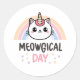 Sticker Rond Cute "Meowgical Day" Caticorn