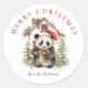Sticker Rond Cute Panda Bear Maison de Noël rustique