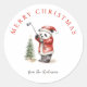 Cute Panda jouant au golf autocollant de Noël. Aquarelles rustiques et lineart style noir et blanc panda ours habillé comme Père Noël jouant au golf. Texte personnalisé avec un joli script tendance.