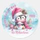 Sticker Rond Cute Penguin bleu et rose Personnalisé Joyeux Noël