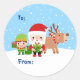 Sticker Rond Cute Père Noël, Elf et Reindeer de et vers