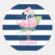 Sticker Rond Cute Pink Flamingos Tropical Leaf, Striped