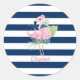 Sticker Rond Cute Pink Flamingos Tropical Leaf, Striped