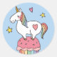 Sticker Rond Cute Rainbow Unicorn sur Anniversaire Cupcake