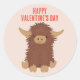Sticker Rond Cute, shaggy Highland classe de vache Valentine