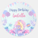 Sticker Rond Cute Sirène Arc-en-ciel Aquarelle fête d'anniversa