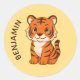 Sticker Rond Cute Tiger Cub Custom Name Yellow