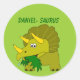 Sticker Rond Cute Triceratops Nom Personnalisé Dinosaur Cool En