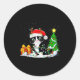 Sticker Rond Cute Tuxedo Cat Santa Christmas Tree Lights Xmas T