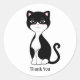 Sticker Rond Cute Tuxedo Chat Cartoon Merci