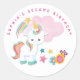 Sticker Rond Cute Unicorn Nom 2e fête d'anniversaire Blanc