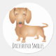 Sticker Rond Dachshund Chien Chien Chien Souriant, Bonjour, Pen