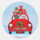 Sticker Rond Dachshund Chien En Voiture Avec Le Père Noël
